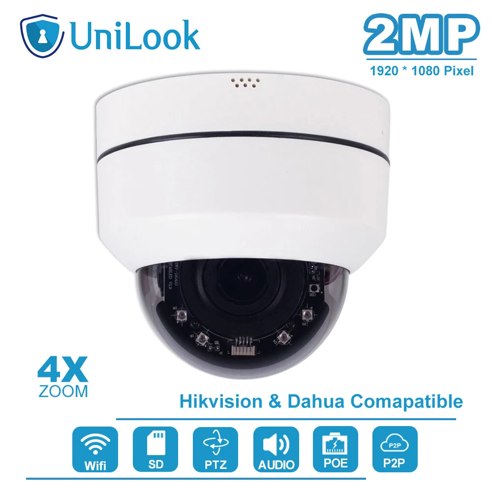 New 2MP Mini Wifi PTZ Dome Camera Outdoor 4X Optical Zoom Built-in SD Card Slot Two Way Audio Home Secu