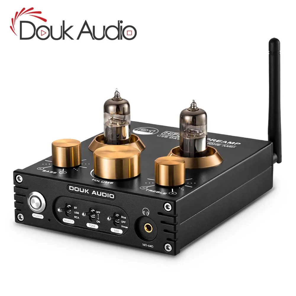 Get Douk audio HiFi Bluetooth 5.0 Tube Vacuum Preamplifier USB DAC APTX Home Stereo Audio Preamp Headph