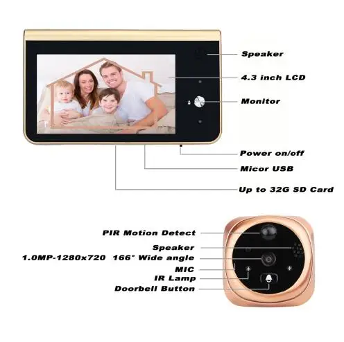 Home » best price , best seller , home audio » Special 720P HD wifi door bell cameras with 4.3' screen for home door security APP control two way audio cl