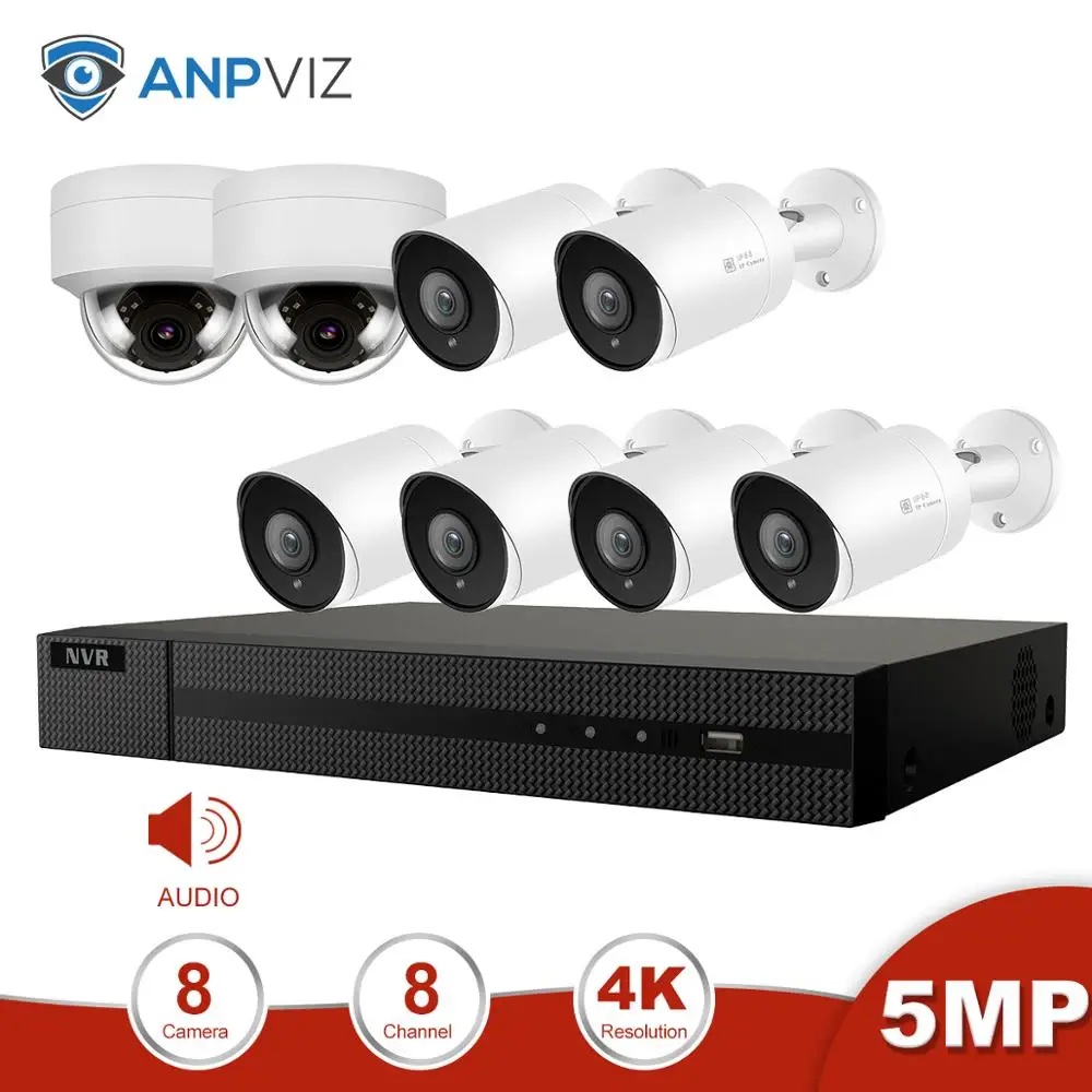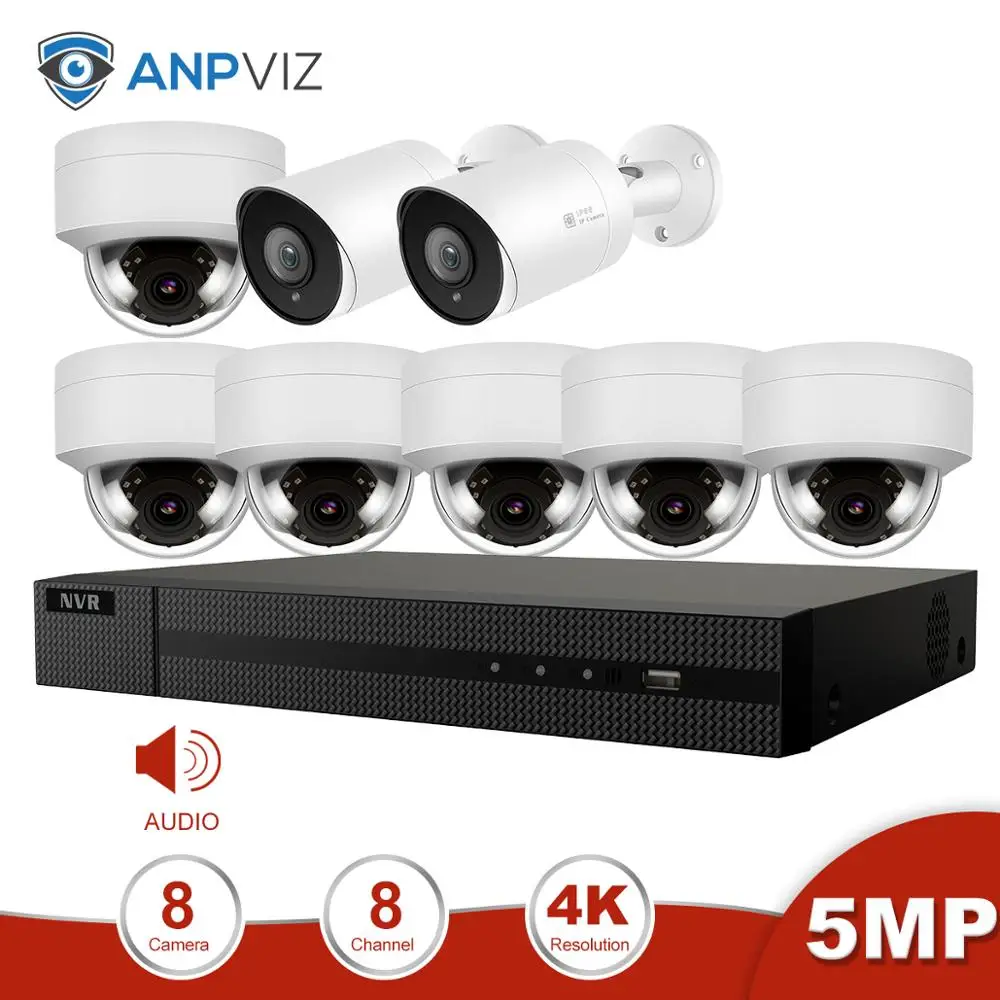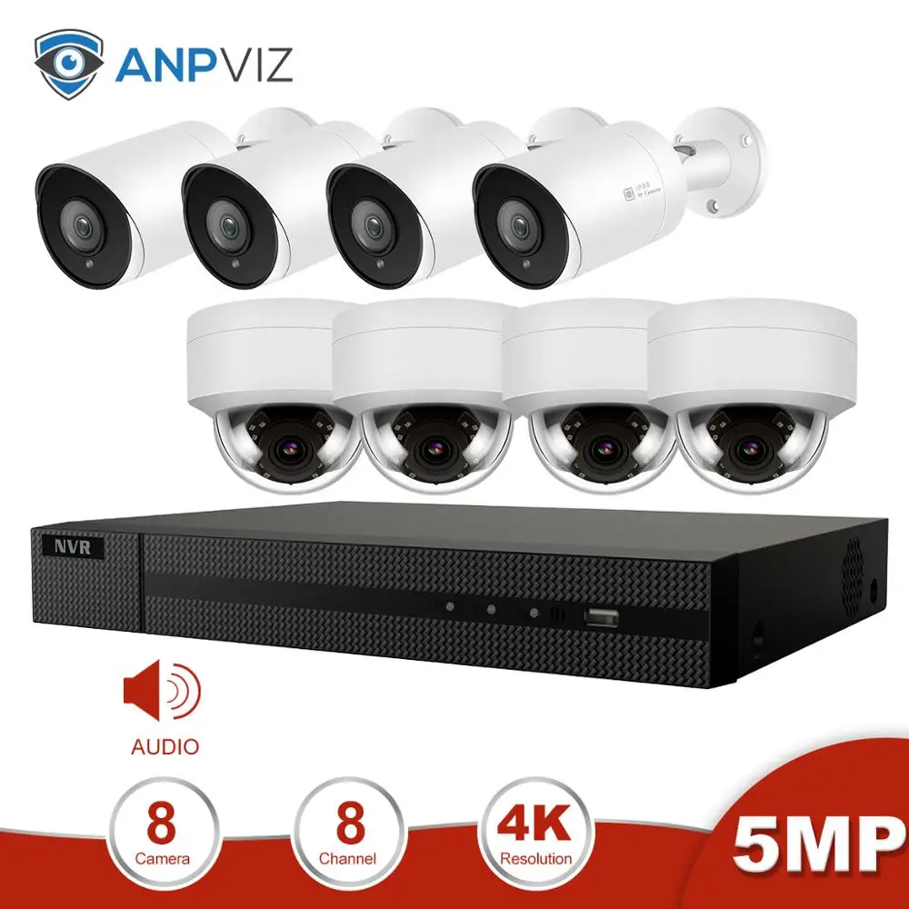 Special Anpviz 8CH 4K NVR 5MP Dome&Bullet POE IP Camera Kit With Audio Home/Outdoor Security Systems CCTV V