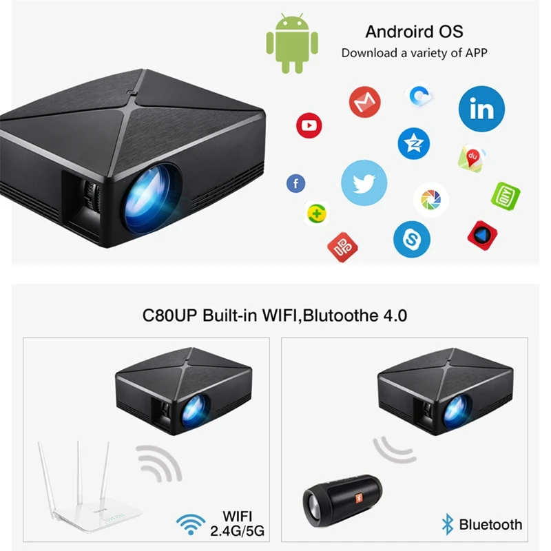 Best Mini Movie Projector 720P 60W 2200 Lumens Home Theater Projectors VH99